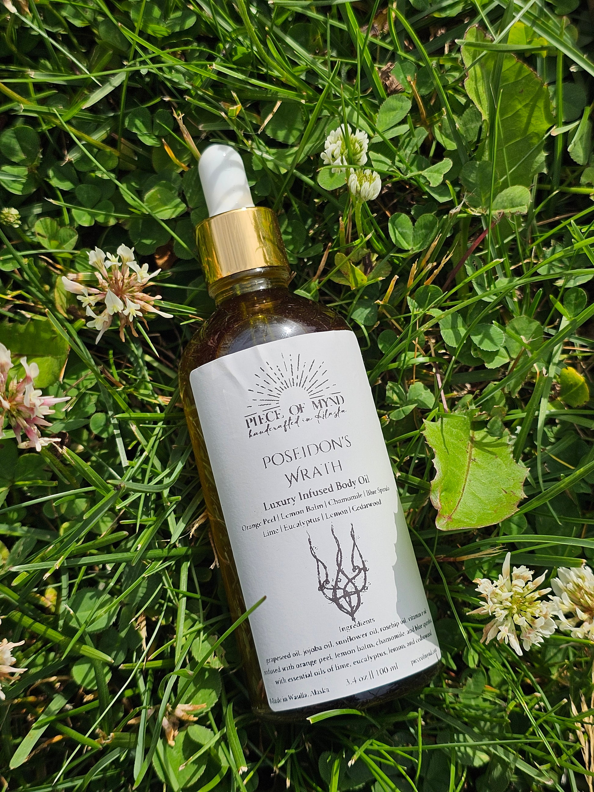 Unleash your inner tide with Poseidon’s Wrath, a refreshing dry body oil infused with herbs of the sea—orange peel, lemon balm, chamomile, and oceanic blue spirulina. This powerful blend channels the cleansing strength and emotional depth of the god of the sea, inviting renewal, balance, and elemental clarity. Feel the power of water move through you.